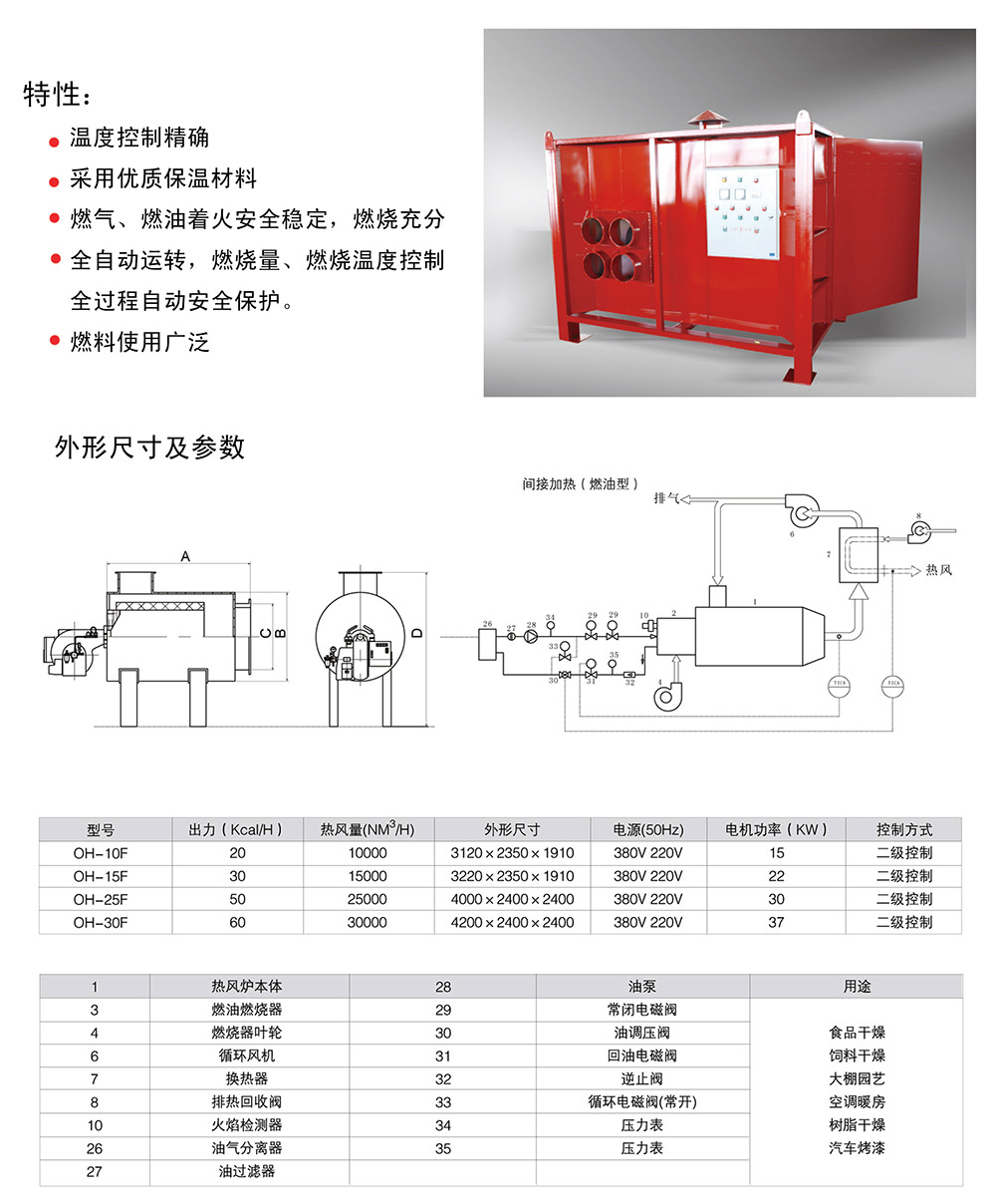 特性:1、温度控制精确;2、采用优质保温材料;3、燃气、燃油着火安全稳定,燃烧充分全自动运转,燃烧量、燃烧温度控制全过程自动安全保护;4、燃料使用广泛。